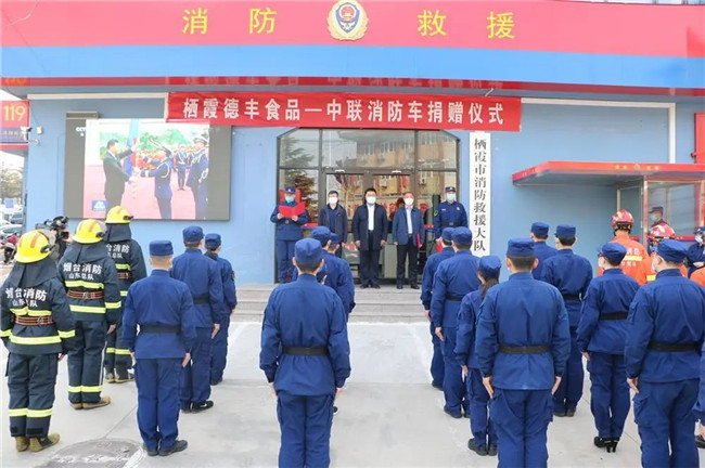 棲霞市隆重舉行愛心企業(yè)向市消防救援大隊(duì)捐贈(zèng)消防車交接儀式