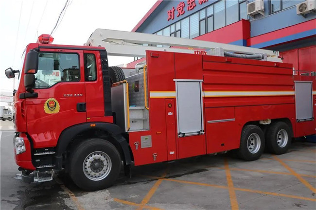 儀式結(jié)束后,大隊(duì)主官向出席儀式的領(lǐng)導(dǎo)介紹了新投入執(zhí)勤的高噴消防車。