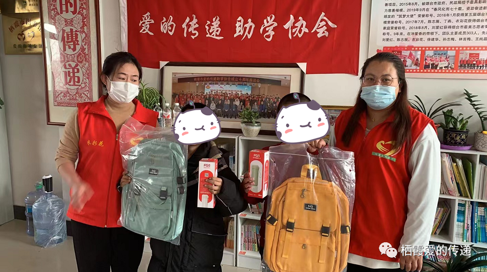 資助款、書(shū)包、水杯以及口罩,孩子們都拿到了