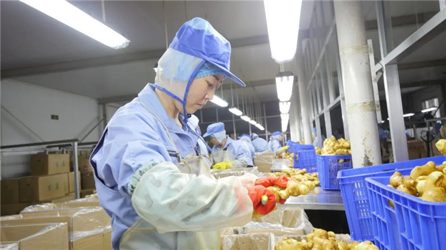 山東濰坊,諸城元康公司的工作人員正在進(jìn)行出口生姜加工