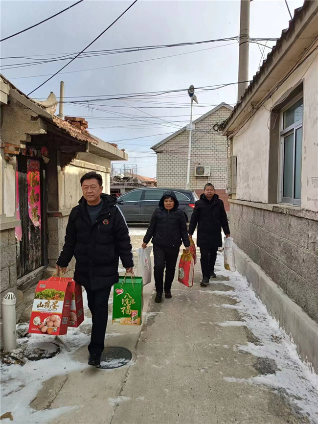大小新聞客戶端12月19日訊 (YMG全媒體記者 趙巍巍    攝影報(bào)道)徹骨的寒冷阻擋不住愛心企業(yè)做公益的腳步。12月17日上午,棲霞德豐食品有限公司辦公室主任陳福春在唐家泊鎮(zhèn)人大副主任衣龍良陪同下,冒著風(fēng)雪來到桃村鎮(zhèn)接官亭村走訪慰問102歲老人趙連英。