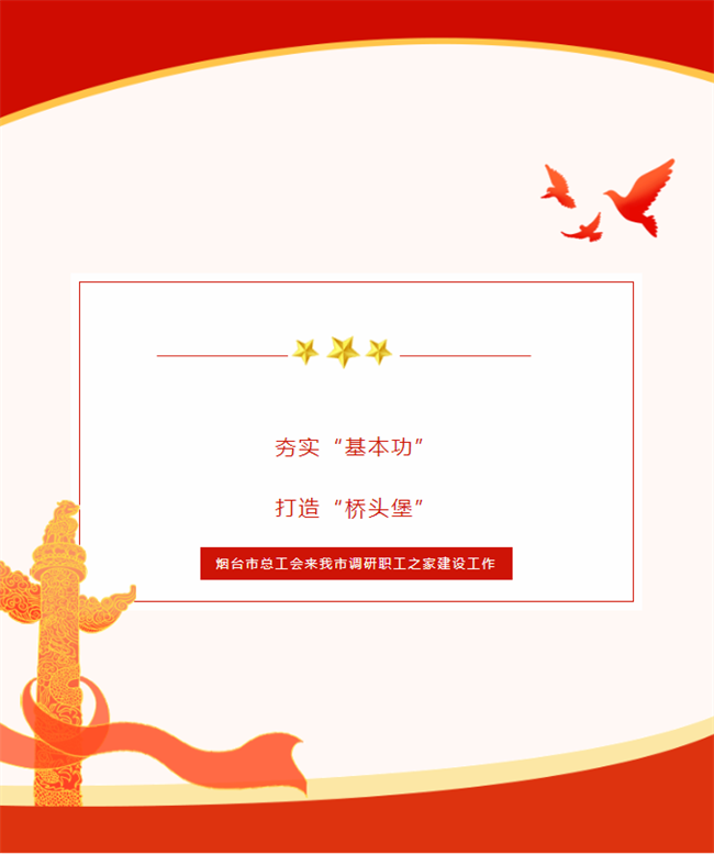 為全面貫徹落實(shí)黨的二十大精神,貫徹落實(shí)“縣級(jí)工會(huì)加強(qiáng)年”系列要求,全面開創(chuàng)工會(huì)工作新局面,7月27日上午,煙臺(tái)市總工會(huì)黨組成員、副主席張瑞鳳一行到我市進(jìn)行職工之家建設(shè)專項(xiàng)調(diào)研,長(zhǎng)春湖省級(jí)旅游度假區(qū)管委主任,市總工會(huì)主席李衛(wèi)國(guó),市總工會(huì)黨組書記、常務(wù)副主席王國(guó)棟及有關(guān)分管領(lǐng)導(dǎo)陪同調(diào)研。